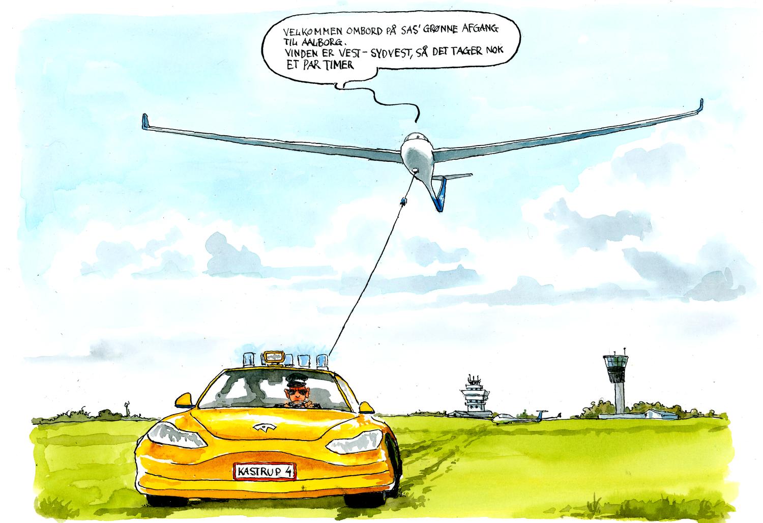 Die Zukunft des Luftverkehrs "Nachhaltige Inlandsflüge müssen ab 2025 möglich sein", sagte die dänische Ministerpräsidentin Mette Frederiksen in ihrer Neujahrsrede. Die dänische Zeitung Politikken kommentierte das passend mit dieser Karikatur: